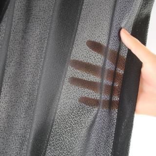 反射率の高い糸を使い裏面(外側)に編み込み光を反射させて日中の室内を見えにくくします。プライバシーを守り、紫外線をカットします。室内からは外の様子はわかります。外光が反射して中が見えにくくなる為、部屋が明るく外が暗い夜間や曇り、雨天の場合は効果は得られません。