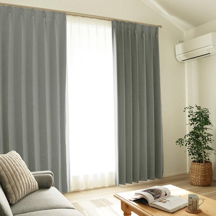 スマートエコカーテンはナチュラルな質感の表裏が同じ素材で軽くてソフトな完全遮光の高機能カーテンです。ざっくりとした質感は天然素材を思わせ見た目も美しくナチュラル、北欧、モダンとスタイルを選ばずインテリアに素敵にコーディネート頂けます。