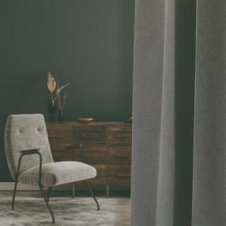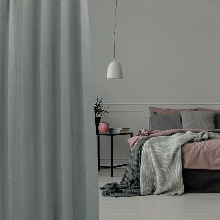 やわらかなグレーのカーテンが、空間全体を静かに整えるスタイル。 白や淡いグレイッシュトーンを基調にすることで、光の陰影が際立ち、 シンプルながらも奥行きのあるインテリアが完成します。