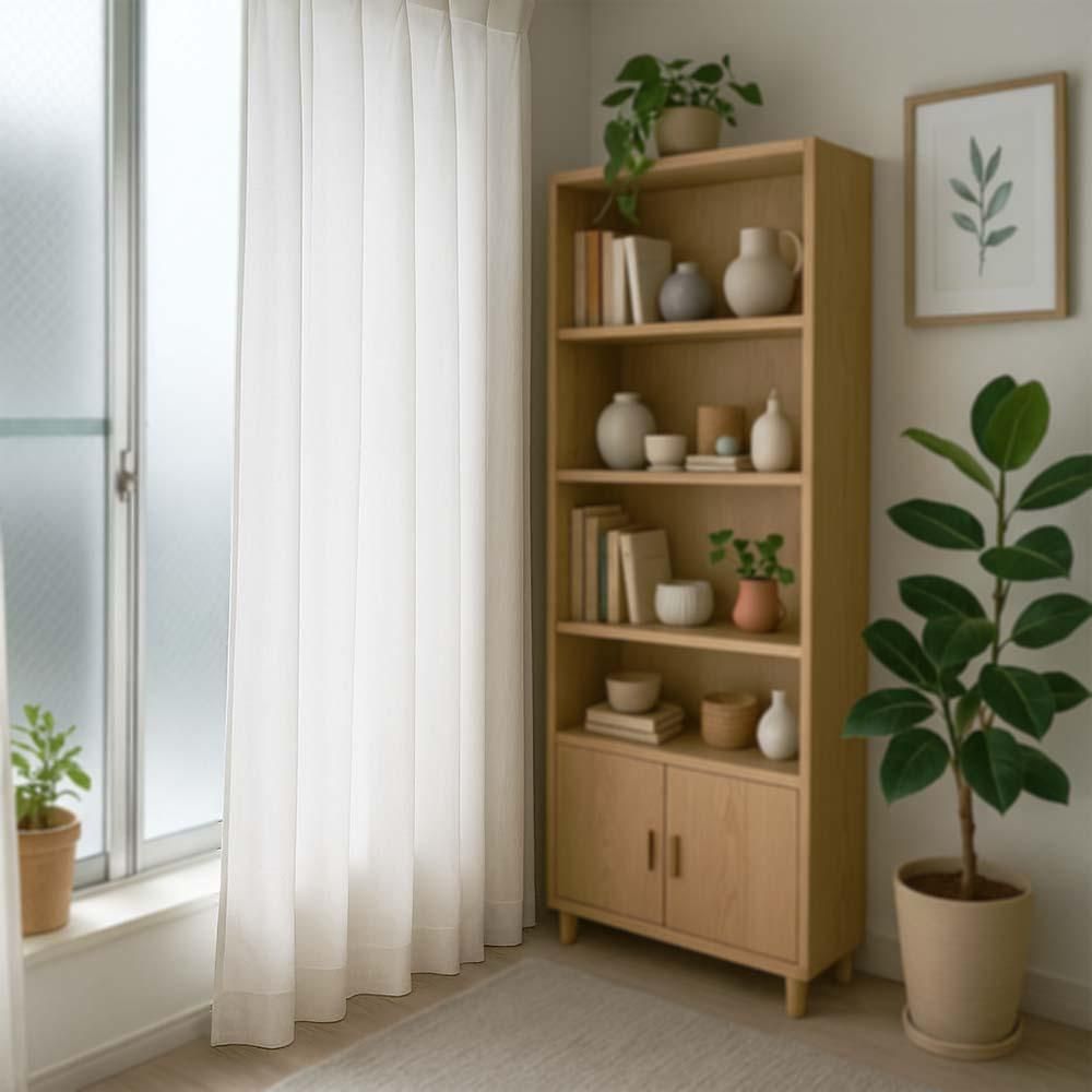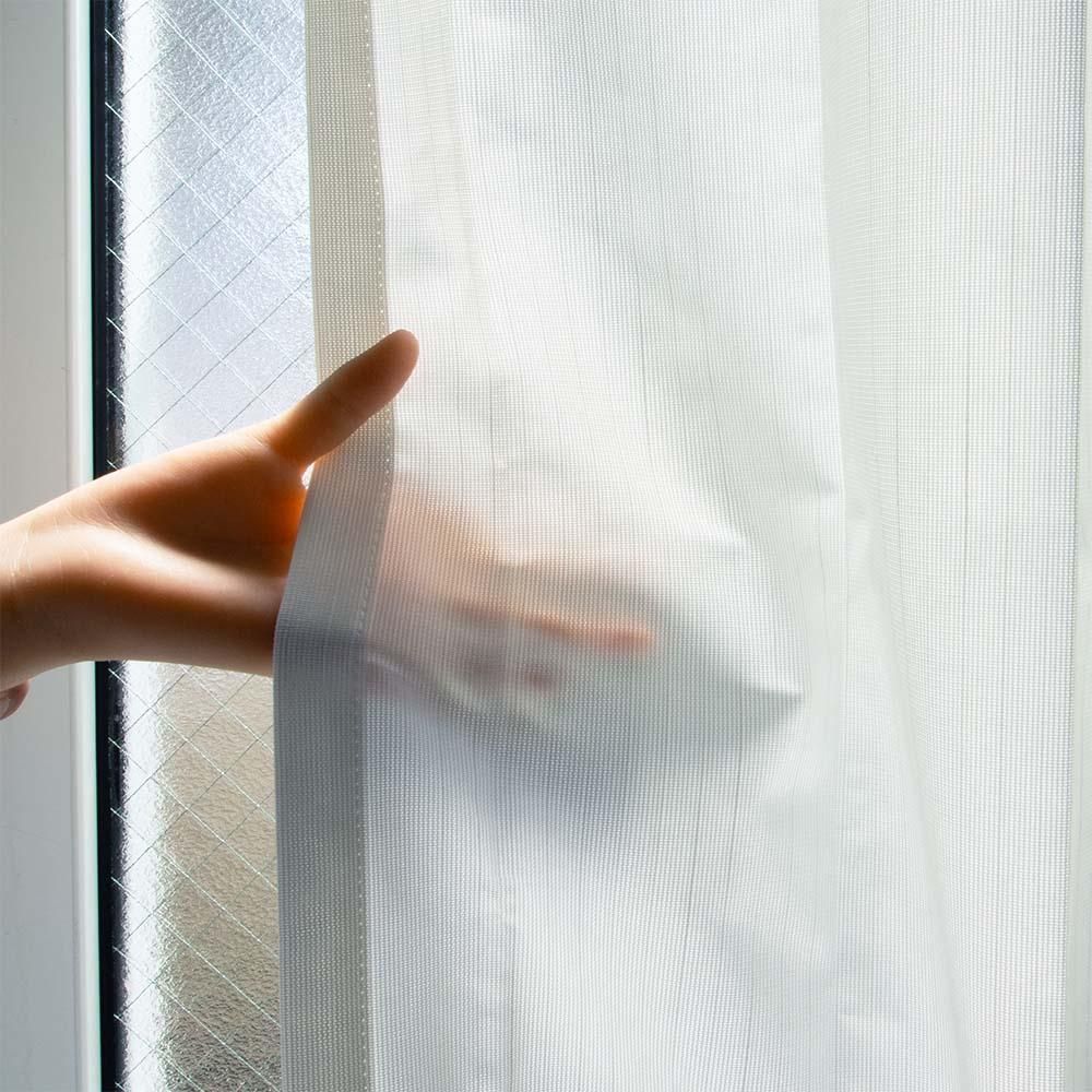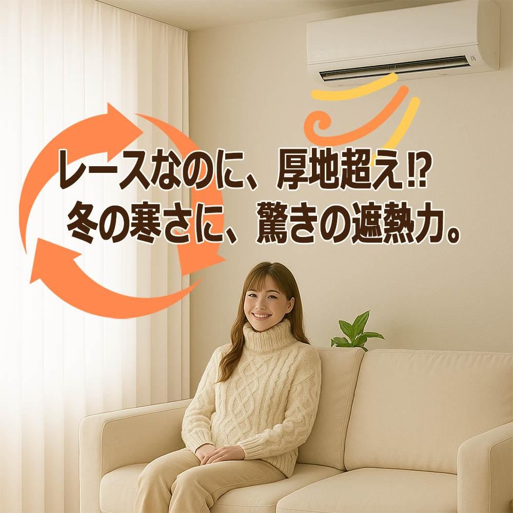 織柄のストライプがさりげなく上品に映える、超遮熱・高機能レースカーテン。 大きな窓のあるマンションにもおすすめの一枚です。 昼はもちろん、夜も室内が見えにくい高い遮像性で、プライバシーをしっかりと守ります。 さらに、窓から侵入する熱や冷気を大幅にカットし、室内の快適さをキープ。 UVカット機能も備えた、しっかりとした手触りの生地が上質な印象を与えます。 インテリア通販 BWY では、カーテンの美しいドレープラインを保つ 形態安定加工を標準で施し、お客様のもとへ丁寧にお届けいたします。
