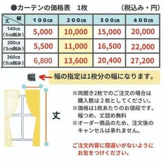 | 価格表 | 〜幅100 cm (1巾) | 〜幅200 cm (2巾) | 〜幅300 cm (3巾) | 〜幅400 cm (4巾) |